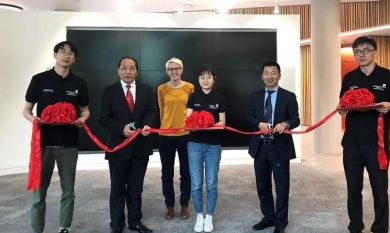2019年4月25日,浙江久立特材科技股份有限公司董事长兼总经理李郑周与英国利兹大学副校长余海岁院士共同为“久立腐蚀与完整性中心”举行落成剪彩。
