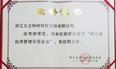 日前,为促进企业加强信用管理体系建设,经公司申报,省工商局、省企业信用促进会考核测评,公司被认定为“浙江省信用管理示范企业”。
