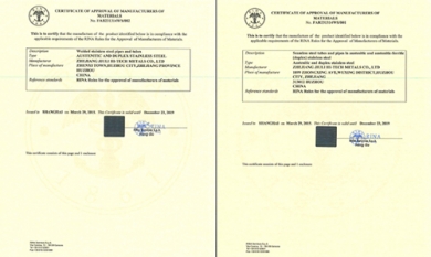 近日,公司通过RINA意大利船级社认证。这是继获得CCS中国船籍社、DNV-GL挪威船级社、德国劳氏船级社、BV法国船级社、ABS美国船级社、LR英国劳氏船级社等主要船级社认证之后,