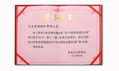 由《浙商》杂志推出的“2014浙商全国500强”排行榜于2014(第十一届)浙商大会发布。
